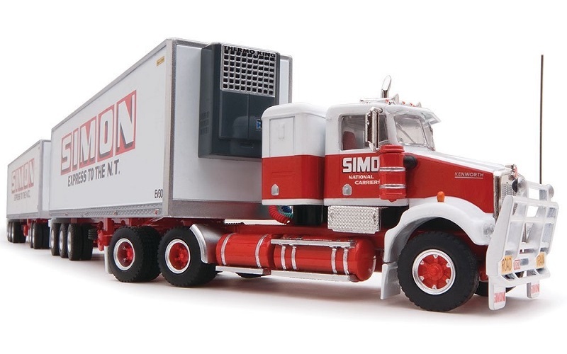 Highway Replicas Simon National Carriers Freight Road Train Prime Mover and 2 x Reefer trailers (HR12037). NOTE: Two trailers only. Diecast metal model with some plastic parts. Detailed interior, livery, and chassis. Limited Edition (Qty TBC). Release date TBC. Expected price $199 (TBC).
