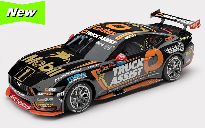 Mobil 1 Truck Assist Racing Ford Mustang GT #2 of Walkinshaw Andretti United (WAU) rising star Ryan Wood. 2024 Sydney SuperNight Mobil 1 50th anniversary livery, featuring the iconic Mobil 1 Pegasus logo. A great model for "Woody" fans. Die-cast metal with some plastic parts. Opening bonnet and doors, detailed racing cockpit and engine bay. Photo etched bonnet pints and brake rotors. FREE SHIPPING TO NZ ADDRESSES.
